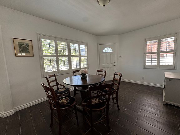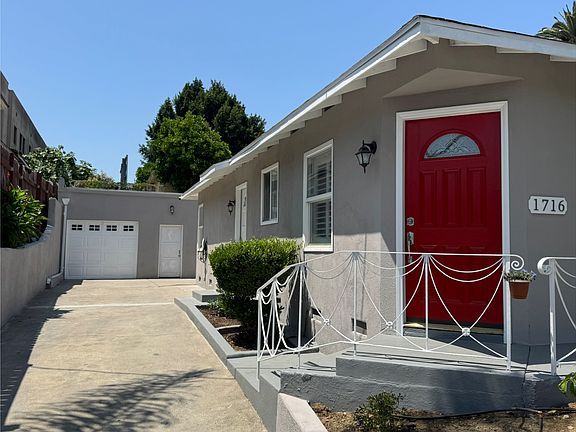 The house sits on a 4,139 sq ft lot and features 1,115 sq ft of interior space, plus a detached 400 sq ft garage and three additional driveway parking spots. The spacious kitchen, living room, and auxiliary laundry room provide comfort and convenience, while the front and back yards filled with mature lemon, lime, avocado, nectarine, peach, and plum trees create a lush, private retreat.