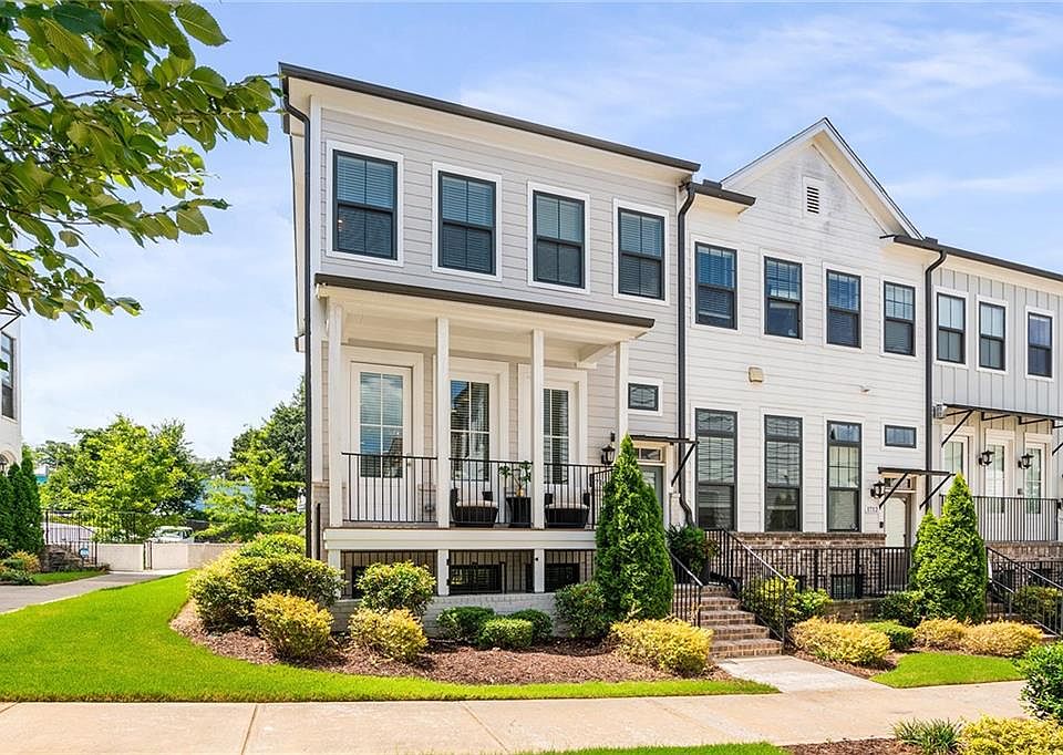 Tucked in the quiet corner of the community for an added element of privacy, this corner unit with a rare, covered front porch, split level front entry create an ease of living for you and an open concept to entertain your guests. Bright living areas, deep wood flooring throughout living areas, screened back porch, and an extra open and covered front porch for pre-dinner cocktails! The flow of the kitchen with upgraded stainless appliances and large center island enhance entertaining. A generous bedroom on the bottom level with a large closet and full bathroom separate living arrangements. Additionally, the top floor has the primary suite and an additional en-suite bedroom for ultimate privacy. On hot summer days - don't hesitate to take a dip in the community pool just around the conrer. To top it all off, meet your neighbors at the plethora of restaurants; seafood, pizza, coffee and more - socializing is a breeze if you so choose. Extremely convenient access to all major interstates and highways.