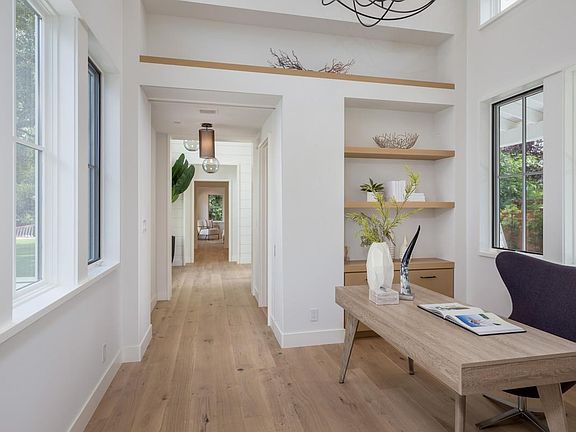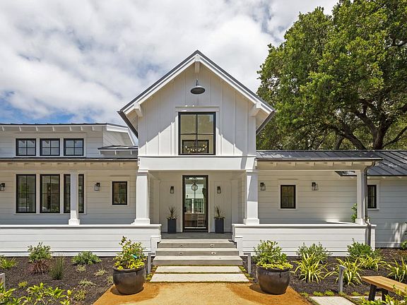 Exceptional newly built modern farmhouse by The Shift Group, with Danielle Wyss as principal architect. Located on a 26,539 sq ft lot at the end of the street and bordering Stevens Creek for optimum privacy. European white oak floors begin in the foyer and continue throughout the home. Living room with cathedral ceiling, rustic exposed beams, tall windows on two walls and stunning chandelier. Formal dining room with oversized iron chandelier and double sliding doors to a fountain terrace. Amazing chefs kitchen with custom cabinetry topped in Calacatta-style quartz, large waterfall-wrapped island and exposed beam cathedral ceiling that spans the entire kitchen and family room. Family room, fully open to the kitchen, with wall of fully retractable glass doors opening to the rear terrace. Upper level comprises the luxurious master bedroom suite. The rear grounds include a large pergola-covered terrace, eco friendly lawn and 4 heritage oaks. Premier South Los Altos location.