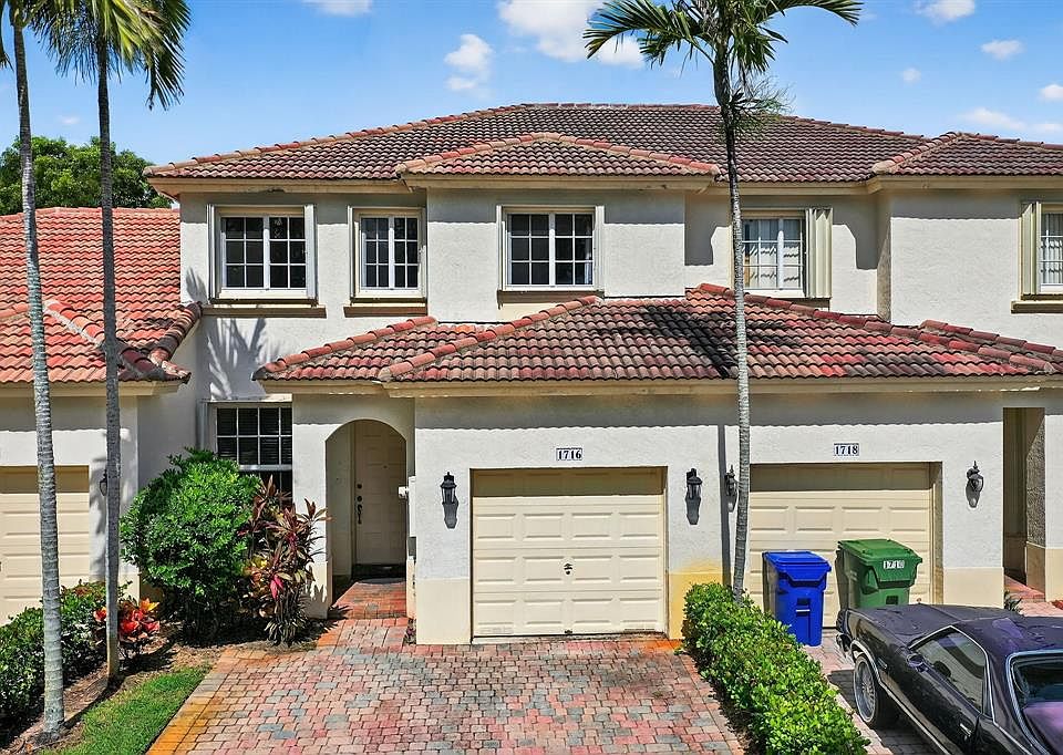 3 bedroom, 3 full bath townhouse PLUS LOFT that can be enclosed for a 4th room. Mini office work station. One full bedroom & bathroom on first floor. Laundry on the first floor. Home is located on a pond w/ privacy hedges. Cul de sac street. Tile & laminate throughout. Smart stainless steel appliances. Hurricane accordian shutters. Approx ages: water heater 2 yrs, washer dryer 5yrs, appliances 3 yrs. HOA includes: cable, alarm, internet, manned guard gate, amenities. Gated community w/pool, kids pool, clubhouse, gym, tennis. Centrally located. Pets allowed.
