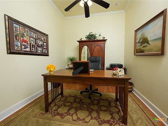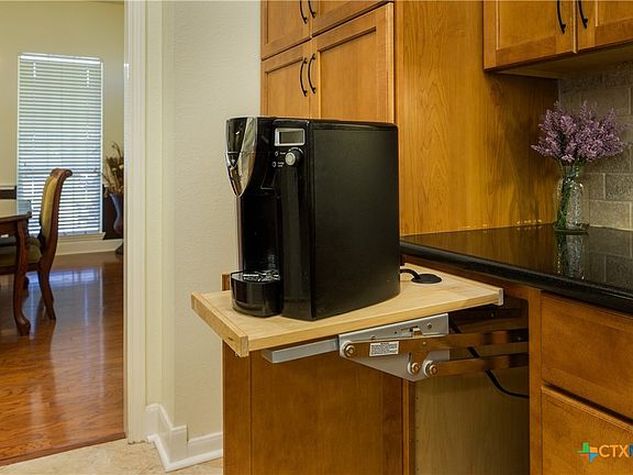 Welcome to your new home! This lovely single story 4/2 is situated on a culdesac lot just .4 miles from neighborhood amenities (swimming pool, tennis/pickle ball courts, basketball court, walking path, playground) and .8 miles from highly rated Veramendi Elementary School. This home checks all the boxes- split floorplan, high ceilings, dining room, office, oversized garage, water softener, covered patios, huge master closet, fireplace, and so much more. The renovated kitchen features huge kitchen island, granite counters, abundant storage, pull out shelves, retractable appliance shelf, pot filler, walk-in pantry, wine fridge, built-in microwave, and butler's pantry. Recent roof, AC, and paint in/out. You don't want to miss this one. Schedule a showing today!