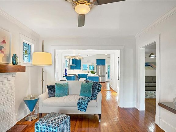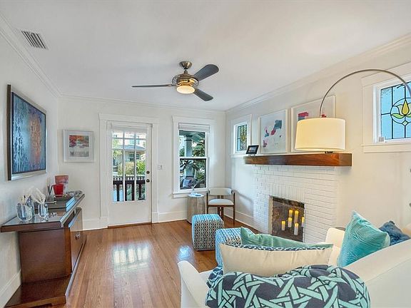 Available for 3 months or longer. Located in the much sought-after Laurel Park neighborhood near upscale Main Street. This unique 3BR/2 bath impeccably furnished 1927 Historic home along with a separate 2 car garage. The renovations completed in 2020 were done with care and precision, from floor to ceiling. The new owners have carefully curated the high-end furnishing, artwork and accessories in conjunction with a well-known interior decorator. The property is one of a kind and you will be hard-pressed to find another home of this quality for lease. Featuring wood flooring throughout, the primary bedroom offers a King bed, walk in closet with built-ins, smart TV and is ensuite. The second bedroom is set up as a den with comfortable seating and a Smart TV and plenty of room to work from home. The third bedroom has a Queen bed. The living area has a charming decorative fireplace, and the dining area offers seating for four or more. If you love to cook, you will enjoy the newly renovated Chef's Kitchen with gas cooktop, center island and breakfast bar. The peaceful large backyard has an outdoor deck and a screened Gazebo for dining al fresco. The property is walking distance to the Marina and Shelby Gardens as well as the great restaurants and shops on Main Street. The property is minutes from Armand Circle and easy short bike ride or drive to Lido and Siesta beach. Sarasota's finest in a quiet residential area with great school districts. Ideal for the reassigned executive or for those looking for luxury during relocation or renovation. (Booked January through end of March 2026)