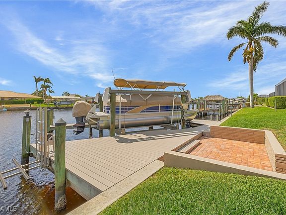 Welcome to your dream waterfront retreat in desirable Cape Coral! This delightful three-bedroom, two-bathroom home offers the perfect blend of Florida living and coastal charm. Step into a large courtyard that opens into a bright, open layout featuring sleek tile floors throughout and elegant plantation shutters that provide both style and functionality.