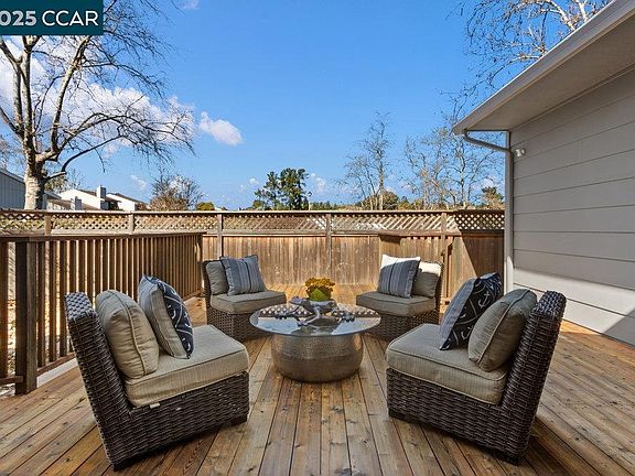 Now price $100,000 below it's original list price. this Beautifully remodeled single level Moraga Country Club townhome has a long list of recent upgrades and just steps to all the Club amenities. An open concept chef’s kitchen with newer appliances, quartz countertops, extra deep sink, tile floors and subway-tile backsplash. Remodeled bathrooms with a level-in subway tiled shower with custom glass enclosure, new European-style toilet plus new vanity with quartz top. Light and bright living room includes vaulted wood ceilings, skylights, cozy brick fireplace and custom built - buffet style wall of cabinets. Attached two car garage conveniently opens to kitchen and great room. Level in and level out redwood deck ideal for everyday living and entertaining family and friends. Other upgrades and features include – dual pane Andersen wood windows and doors, stylish lighting and plumbing fixtures plus extensive use of recessed lights with custom dimmers. Hardwood floors, stylish “barn doors”, baseboards, wood trim and upgraded brush nickel door handles. The exterior was painted in 2023. Newer furnace and air conditioning units plus a new roof installed in 2025. Monthly HOA $1280 covers siding repairs, common area maintenance, full access to Club facilities & more!