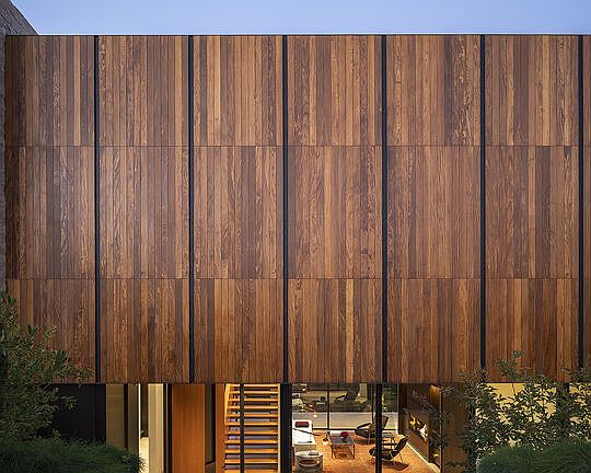Floating walnut staircaseIncredible gourmet kitchenSlatted afromosia woodImpeccable detailInfinity edge poolPrimary suiteWalls of glass