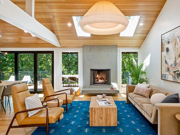 Rare Scandinavian inspired, NW contemporary renovated home in desirable Lake Oswego. Every surface was touched in quality renovation and this home is perfect for a high style buyer that is looking for DONE! Perched on a sunny lot with vaulted ceilings and 7 skylights throughout, this airy home is bursting with natural light in and just feels cool. A killer floorpan maximizes this home to accommodate 4 bedrooms, office, a home gym (or 5th bedroom) and wellness center with sauna + cold plunge. Designer details throughout including interesting light fixtures, custom cabinetry, modern gas fireplaces, smooth finish drywall, new landscaping/hardscape designed by a coveted Portland landscape designer +more! Gourmet kitchen with 36" BlueStar gas range, wine fridge, quartz countertops and built-in panel refrigerator. The primary suite on the main floor feels like a sanctuary with a spa like en-suite bathroom with the most incredible soaking tub, private deck, a feature wall and large walk in closet.Made for entertaining, this home has an open living/dining/kitchen concept that flows out to the oversized deck through a 9 foot panel of folding glass doors. Coveted Lake Oswego schools, zoned for Greentree neighborhood pool, minutes to New Seasons and amenities of downtown LO. Review the features list to see all the improvements, including a built in whole house generator. This one of a kind stylish home is special and you will feel it the moment you step inside! Seller is licensed broker in Oregon.