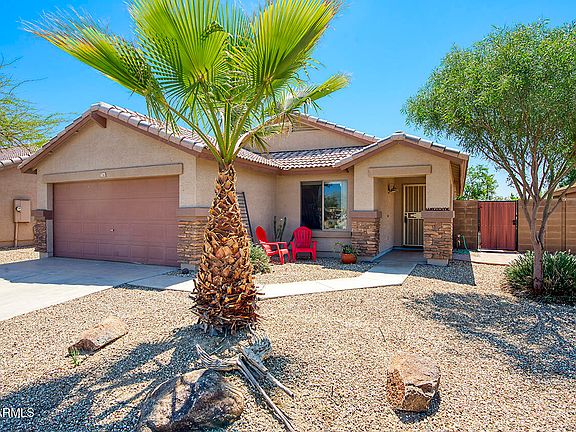 Absolutely Stunning 3 Bedroom & 2 Bathroom Home in Goodyear! Beautiful Plank Wood Style Tile Flooring Throughout! Open and Inviting Floor plan with Vaulted Ceilings. Custom Brick Focal Wall with Pendant Lighting. Open Den includes Built-in Book Shelves. Large Eat-in Kitchen. Extended Island. Breakfast Nook. Spacious Master Suite includes a Remodeled Bathroom and a Walk-in Closet. Low Maintenance Yards. Covered Back Patio Extended with Brick Pavers. Lot is Situated Across from a Large Greenbelt. Convenient Location near the Loop 303 and I-10 Freeways.