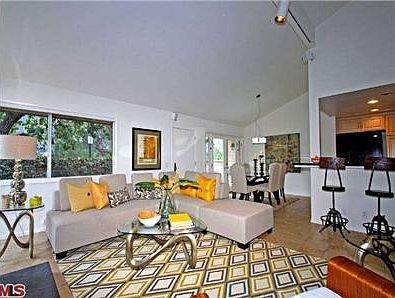 Beautifully staged corner unit freshly painted. Very light/bright unit with mountain views. Italian tile and maple cabinetry with granite counter tops. 2 bedrooms with hardwood floors. Private over sized two car garage, direct access, built in cabinetry lots of storage space. Separate laundry room area. Large front garden patio. Fireplace & high ceilings.