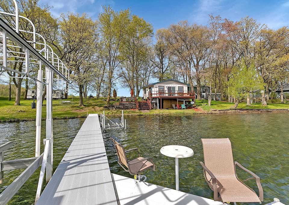 Excellent lake cabin that the family will be able to enjoy for many years. Property comes with 183' of lake frontage and an awesome dock! Fire pit perfectly situated for friends and family to reminisce around! This beautiful cabin features a block foundation, electric heat and a wall a/c unit. Water softener rented through Erkens. Water heater new in 2018. Storage space under cabin for kayaks, canoes, fishing gear, patio set, camping chairs, etc. Private well and septic ??? new 1600 gallon holding tank installed in 2015. Gorgeous interior that boasts knotty pine ceiling with recessed LED lights, accent walls in kitchen with a bit of tin and old farm wood, custom cabinetry, updated kitchen faucet, sink and light fixture, bamboo wood flooring and new patio door to deck in 2015. Bathroom remodeled with fresh paint, new shower unit, vanity, stool and flooring. Be sure to check out the virtual tour link for an awesome aerial video!