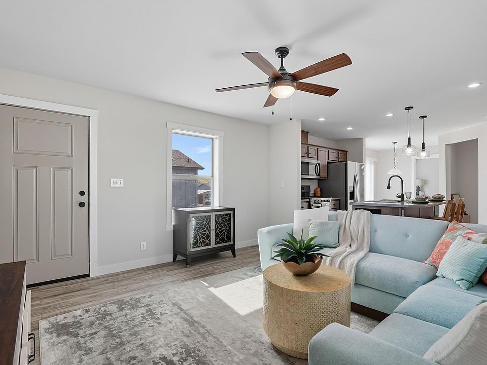 Cozy breakfast nookCenter islandCeiling fansGarbage disposalBlack-matte pulldown nozzleWalk-in closetUpgraded double vanity