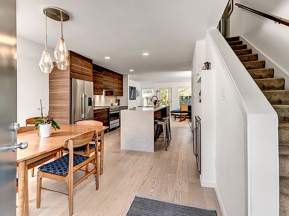 Centrally-located fully furninished townhome in Seattle's Capitol Hill neighborhood, one of the city's most vibrant and exciting neighborhoods. The townhome is three stories, the main living areas: Living room, kitchen, dining room and guest bath are on the first floor, the second floor has two bedrooms, full bath, and full size laundary. The third floor has a kitchenette and private rooftop deck and generous storage closet. A detached single car garage with power 20a 110v power for electric vehicle charging. The home was completely renovated in 2019. The home is offered fully furnitioned and stocked kitchens. The second bedroom is currently furnished as a home office but can be furninshed as a bedroom if needed. The home is steps away from Seattle's best eateries, shops and entertainment with a walk score of 93.