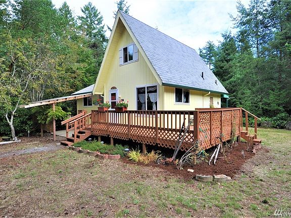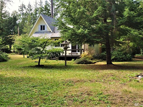 Charming original cottage with spacious, modern addition. The addition is open and bright with lots of windows, vaulted wood-beamed ceiling and sliding door to the deck. Woodstove adds to the cozy charm. Extra large three-lot combo. 30,841 sf corner lot ensures privacy w/room to expand the structure. The level yard has firepit, horseshoes, fenced garden, fruit trees, grapevine and many flowering shrubs and mature trees. Outdoor decks and cement patio. Detached garage/shop and a 2-car carport.