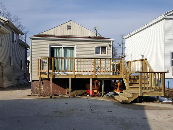 Many updates have been done. Newer roof, siding, deck. Newer kitchen and bath. Patio doors off the kitchen to the deck. Finished rec room in basement. Shared driveway. Some newer windows.