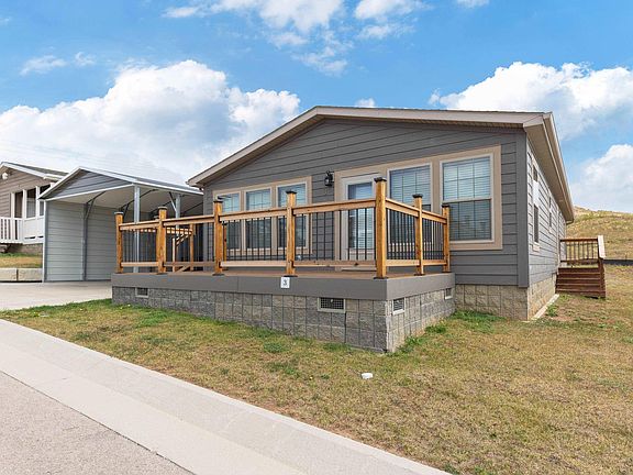 Welcome to effortless living in Shepherds Meadow, the Black Hills’ premier 55+ active adult community with a vibrant calendar of social events. This fully turn-key 3-bedrrom 2-bathroom gem offers the perfect blend of comfort, convenience, and style in a serene, pet-friendly setting. Truly move-in ready inside and out. From the unmatched curb appeal to the thoughtfully designed interior spaces, this home is built for living well and entertaining effortlessly. Kitchen with large island, stainless steel appliances, and generous prep space. Dining Room made for holidays, dinners with friends, or quiet evenings in. Large primary ensuite with tile shower and separate dreeing area. Exterior Perfection! Large front deck with views...enjoy both sunshine and shade throughout the day. Priced with 2 car carport. Many upgrades...storm doors...window coverings.... new carpet! Exterior is being updated to drought tolerant turf! No HOA fees! Lot rent is $450 month includes snow removal, exterior care of turf/tree and community building with fitness center.
