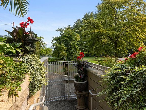 EXCLUSIVE WATERFRONT TOWNHOUSE AT BAYSHORE GARDENS II, JUST STEPS TO STANLEY PARK. Hard to believe this exists but it does! Imagine having your own private garden gate leading directly into parkland and onto the Seawall. You're surrounded by trees, away from the hustle and bustle, yet within easy walking distance of every imaginable amenity. Downsize without compromise, with 3 PARKING STALLS, 12' x 8' locker, and an incredible 1,300sf+ private patio/garden for your green thumb and your pets (2 dogs/cats). Tastefully renovated and laid out on just two levels, the expansive main floor flows seamlessly out onto the extraordinary outdoor space.The upper level enjoys exquisite park, marina and water views from the stunning primary suite, 2nd bedroom/office and lovely upper deck. SO SPECIAL!