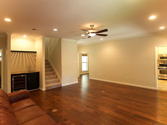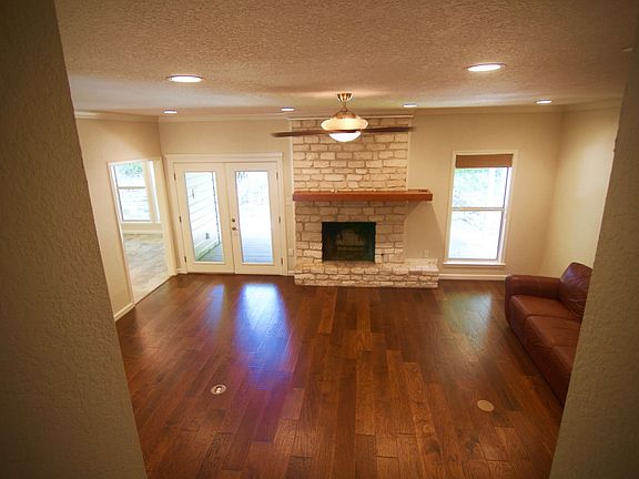 Gorgeous 4/3 high end appointments & attention to detail through out. Recessed lighting, crown molding, wood floors, marble in kitchen, dining, bathrooms and carpet in bedrooms. Spacious living room with a open floor plan, downstairs office or 4th bedroom downstairs. Master on second features walk-in frameless shower and two closets. Kitchen boasts granite, ss and ample cabinet space. Wrap-around balcony on beautiful treed lot. Living room has wood floors with Wine Refrigerator and bar and fireplace . Central heating and air. EANES schools! Close to downtown in the desirable Lost Creek neighborhood. Flexibility with move in, early as next week!