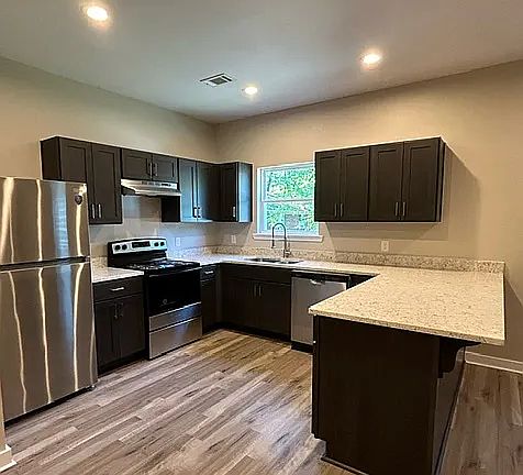 COMING SOON! THIS UNIT WILL BE AVAILABLE IN MID-OCTOBER! Welcome to these all new, spacious, 1590 square foot, 3-bedroom, 2-bathroom, 2 car garage duplexes. These homes offer functionality, and style with stunning vinyl plank flooring, open floor plan, private entry and ample space for the family. All conveniently located close to local schools, shopping centers, and parks in the ever-growing Conway, Arkansas. The main living area boasts custom fabric blinds and 9ft ceilings with a thoughtfully laid out open floor plan that flows seamlessly into the stylish kitchen. The kitchen area was designed with functionality and style in mind, from the stainless-steel appliances, beautiful quartz countertops, custom cabinetry and a spacious island this kitchen is perfect for entertaining guests. Just off the kitchen you'll appreciate a very conveniently placed walk-in pantry with ample storage space. As you continue down the hallway, you'll find the guest bathroom equipped with quartz countertop and high-efficiency toilet. As well as two guest bedrooms, both featuring walk-in closets and custom fabric blinds, in addition there is a separate laundry room with double doors for easy use. The master suite is at the end of the expansive hallway and includes a walk-in closet, custom fabric blinds and private bathroom featuring quartz countertop and high-efficiency toilet. The master opens to a private deck and large shaded back yard. You're sure to enjoy the convenient two-car garage and the family-friendly neighborhood. Space is limited so don't miss out on this incredible opportunity! -$45 application fee- A soft credit check will be performed with submission of application, as well as criminal history, and rental history report. -One year lease -No inside smoking -No pets-Unless certified service animal and can provide documentation as such. -Deposit due at lease signing -First month rent due prior to move in -Maximum 8-person occupancy