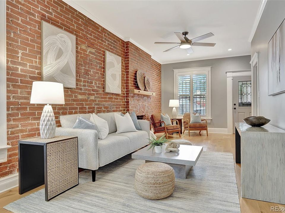 Welcome to 1717 E 16th Avenue, a beautifully updated end-unit row home in the heart of City Park West. This home blends historic charm with modern style, featuring locally milled oak floors, 2 inch custom shutters, exposed brick, and an open layout. The gourmet kitchen is a showstopper — sleek cabinetry, marble surfaces, and a custom-built table/bench set make this both a beautiful and functional culinary hub. Retreat to the primary bedroom with ensuite bath, complete with stunning marble and an abundance of natural light! An additional bedroom and half bath round out the main level for your guests' convenience. The private, fenced in backyard is perfect for entertaining and has a custom built outdoor television and a dog door. The spacious basement has been remodeled into a gear locker featuring ski racks, helmet hooks, and a customizable peg board, offering plenty of additional storage room. Roof refinished in 2024. Simple HOA maintains structure, manages water, and provides exterior insurance. Just blocks from City Park, 17th Ave dining, and the 16th Ave bike route — this is urban living at its best.