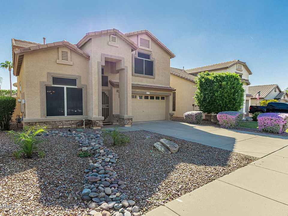 Best priced home with a pool in Gilbert! Beautiful home in popular neighborhood with several parks! Home has GRANITE countertops, stone backsplash, new dishwasher, kitchen island, breakfast bar, WALK IN PANTRY & fridge conveys! Home has brand new paint, wood tile floors in kitchen/dining/bathroom, carpet in great shape, 2 master closets including one that is a walk in, jetted master tub, & LOFT upstairs! Washer/Dryer stay! Relaxing backyard with large covered patio & sparkling POOL and water feature! Excellent lot location backs up to neighborhood common area, no neighbors behind! Home is conveniently located between San Tan Mall shopping/entertainment district & Downtown Gilbert! Also very close to 202 freeway. Gilbert Unified School Dist is one of the top in AZ! Move in ready condition!