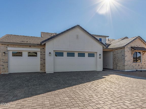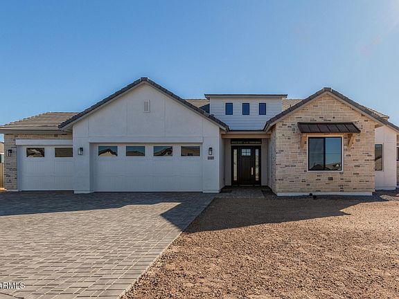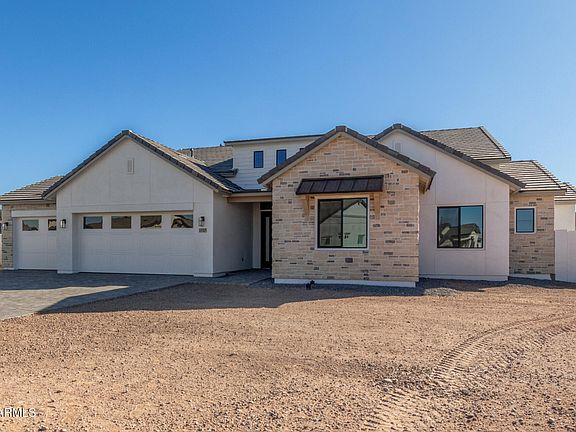 Situated on a spacious lot exceeding 18,000 square feet, the home features a welcoming facade with stone accents, a three-car garage, a paver driveway, and an RV gate.