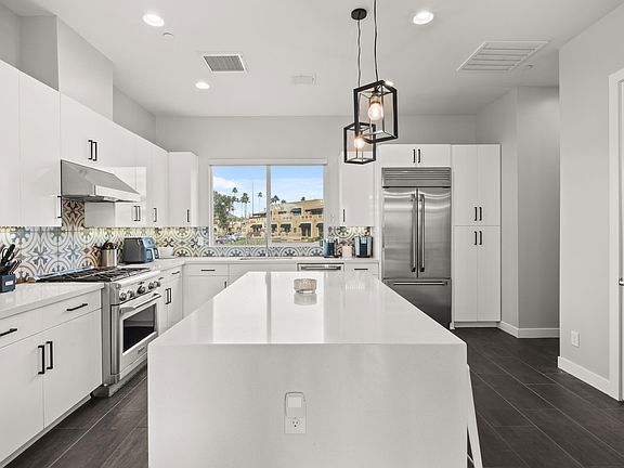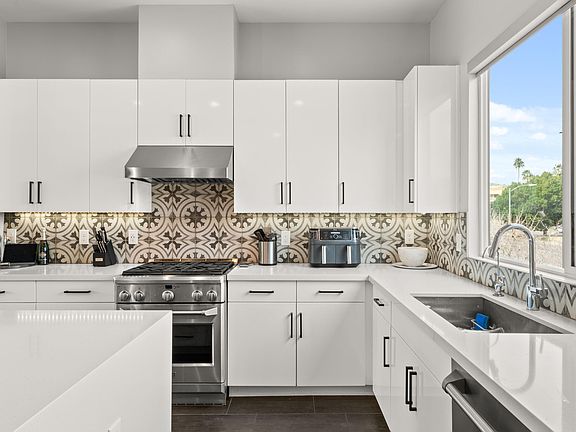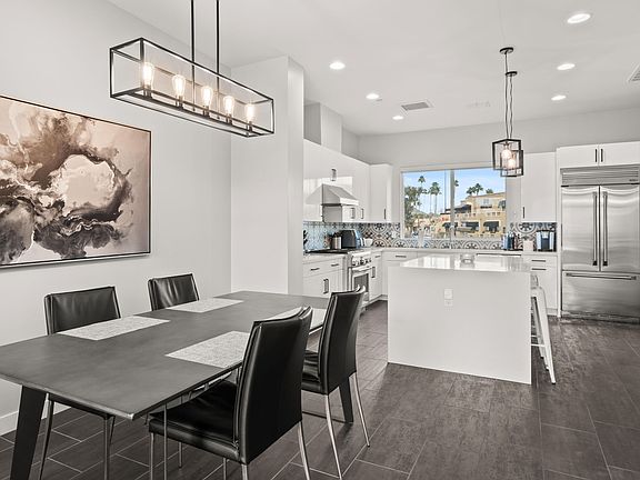 Terrific mountain and city views from the furnished roof deck and fast access to freeway, grocery, dining and hiking. Walk next door to iconic Best of Phoenix restaurant ''Aunt Chilada's'' or across the street to Hilton Resort At The Peak. 2019 construction with upgraded contemporary fixtures and designer finishes. This well designed, multi-level floorpan overlooks the pool and provides direct views Piestewa Peak and city lights. Ground floor den/office/playroom has a full bathroom and private patio. Kitchen has GE Monogram appliances, Ring camera/doorbell at front door and motorized window blinds throughout.