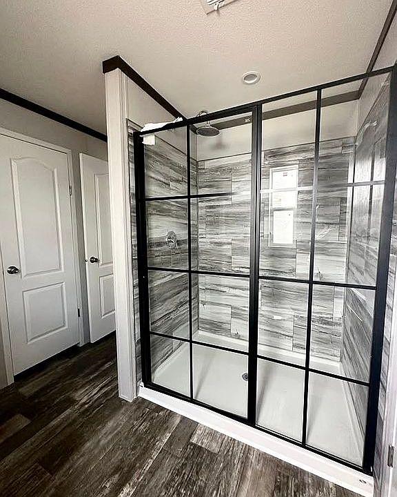 Huge walk-in showerStainless steel appliancesPorcelain sinksMetal roof