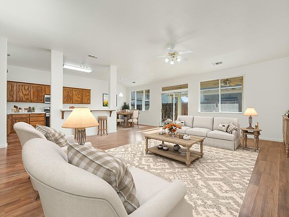 Welcome to 1717 Fireside Way! This 5 bedroom 2 bathroom home is centrally located close to both downtown Lemoore, Highway 41, and 10 minutes from NAS Lemoore for your convenience. Inviting curb appeal and front porch, low maintenance front and backyard landscape. Rear covered patio offers 2 installed ceiling fans. Enjoy a large open kitchen to dining and living room floor plan with eat in island bar. Master bedroom boasts a large walk in closet and double sink vanity ensuite. Hall bathroom offers the double sink as well! This house is a must see for any family!