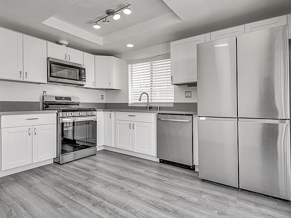 (ASK ABOUT MOVE IN INCENTIVE) Looking for spacious, worry-free living? Discover this beautifully updated 3-bed, 2-bath gem nestled in a quiet, family-friendly Las Vegas neighborhood. With over 1,100 sq ft of thoughtfully designed space, this home blends comfort and convenience. The modern open layout features a bright living room and a chef-ready kitchen with sleek stainless steel appliances and quartz countertops. The primary suite includes an en-suite bathroom, while large windows and high ceilings fill the home with abundant natural light. An indoor laundry closet with a washer and dryer adds everyday ease. Step outside to a private backyard, perfect for grilling, entertaining, or simply enjoying peaceful evenings. An attached 2-car garage and additional driveway space offer plenty of room for guests or extra vehicles. Just minutes from shopping, dining, parks, and top-rated schools, this home delivers the suburban calm you crave with city amenities close by. Pets are welcome, just ask!