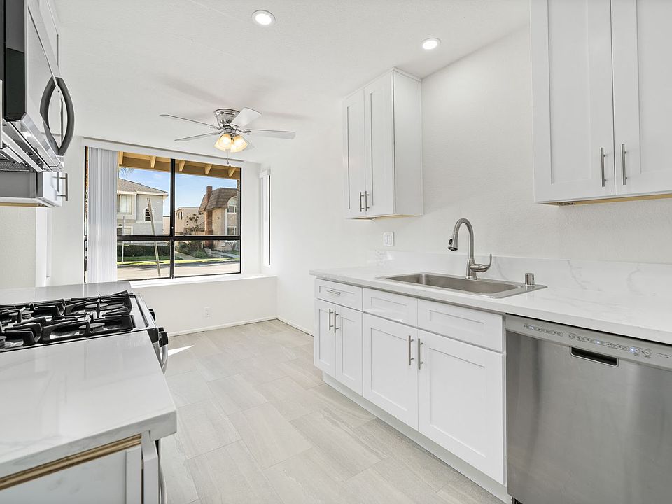 IMPORTANT GUIDELINES: - Income requirement: Monthly gross income = 3x rent amount, or more - Good credit and one year minimum lease required - Non-smoking only. Single story 3 BR 2 BA feels like a home as there is nobody above and shares only 1 wall with a neighbor.Located on a corner lot which allow an open feeling. - PRIVATE IN UNIT LAUNDRY AREA WITH WASHER/DRYER HOOKUPS - Fully renovated kitchen with new cabinets, quartz counter tops, sink, and microwave - Private enclosed garage with finished and painted walls - Sliding doors in all bedrooms that lead to patios - Soaring vaulted ceilings have been scraped- multiple skylights throughout make it very bright - Master bedroom has an updated private patio and full wall closet with 4 large doors.- HUGE. - Central heating system. - New carpet and tile flooring just installed throughout - New recessed lighting in kitchen and dining area. We have found that 100% of the people that become our residents pick up the phone and call us. If this property works for you. Please call us to discuss.