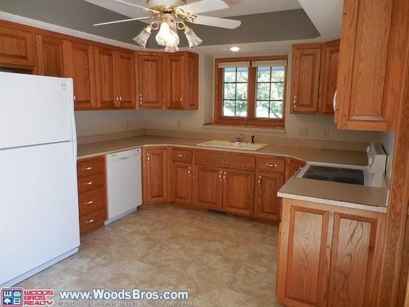 Updated ranch with new floor coverings and fresh paint throughout. Large eat-in kitchen. Over-sized 1st floor laundry/mudroom off garage. Three nice sized bedrooms. Living room features bow window and fireplace. Daylight basement includes rec room, family room, large office, .75 bath and great storage area. Pella clad windows, 14x12 deck, covered porch, sprinklers and nicely landscaped yard. This one is move-in ready.