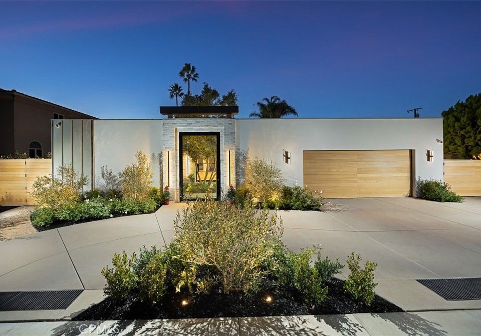 A work of modern art, 1717 Irvine Avenue emerges as a contemporary haven where architecture, nature, and luxury coexist in perfect harmony. Newly reconstructed with uncompromising craftsmanship and a bold artistic sensibility, this residence transcends traditional living. A monumental 10-foot glass pivot door introduces the home with a dramatic reveal: indoor and outdoor spaces collapse into one fluid environment shaped by elemental beauty. A waterfall wall, lush living plant installations, and a mature olive tree bring nature into the core of the home, creating an ethereal threshold that feels both tranquil and unforgettable. Inside, a sweeping open floor plan grounds the home’s modern aesthetic. The living room, wrapped in disappearing glass walls, blurs the boundaries between inside and out and flows seamlessly into the gourmet kitchen. Here, custom cabinetry, a hidden walk-in pantry, striking stone surfaces, and top-tier Thermador appliances elevate the space into a functional work of art, anchored by an oversized waterfall quartzite island. The formal dining room glows beneath a statement chandelier and is framed by dual Thermador 92-bottle wine towers—an exquisite stage for intimate dinners or grand celebrations. The entertainer’s backyard extends the modern narrative with a saltwater pool and spa illuminated by micro-LED lighting, a fully realized outdoor kitchen and BBQ, and generous lounge areas. Whether in sunlight or beneath the glow of the evening lights, the outdoor environment evokes the serenity of a private resort. The primary suite serves as a luxurious retreat—beautifully composed with a sculptural soaking tub, glass-enclosed shower, dual vanities, and a custom walk-in closet. Three additional guest bedrooms feature bespoke closets and share a spa-level bath, while one of the guest bedrooms with custom built-ins can serve as an office, which adds elegant utility to the home’s thoughtful layout. Even the garage becomes part of the design narrative, finished at showroom quality with hexagon lighting, custom cabinetry, and designer flooring. Enhanced by premium technology throughout—including Waterstone fixtures, Lutron lighting control, dual-zone HVAC, central audio, and whole-home Wi-Fi expansion—this residence is as intelligent as it is striking. Positioned near the edge of Newport Beach’s treasured Back Bay, 1717 Irvine Avenue is not merely a home but a modern compound of curated luxuries, bold design, and seamless indoor-outdoor living.