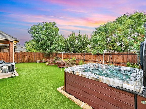 ***SPECIAL FINANCING AVAILABLE WITH 2-1 BUYDOWN*** With an accepted offer, seller and preferred lender will help buy down your interest rate for the first two years—making monthly payments more affordable! Stunningly updated home in highly sought-after Prosper ISD! Top notch curb appeal with professional landscaping and a fully turfed backyard featuring a beautiful covered patio and Michael Phelps Master Legends Series HOT TUB with its own dedicated outlet. A newer roof (2020) with 150 mph-resistant shingles, 4-ton HVAC with ECO system (2023), and a newer water heater (2021) ensure peace of mind for years to come. Inside, you’ll find luxury vinyl plank flooring, plantation shutters, new carpet, and extra canned lighting throughout. The chef’s kitchen boasts an oversized island, granite counters, double ovens, top-of-the-line KitchenAid appliances, butler’s pantry, oversized walk-in pantry, and pull-out shelving in cabinets for maximum storage and convenience. Thoughtful touches like under-cabinet outlets for small appliances and a wall of cabinet storage make this kitchen incredibly functional. The primary suite is a retreat with a large walk-in shower with new basin, above-bed reading lights, frameless glass enclosures, quartz counters, and custom closet shelving. Additional highlights include a gas log fireplace, smart home alarm system, full-home surge protection, built-in shelving in all bedroom closets, automatic sprinkler system, extra storage in both the garage and attic, and doggie doors from the laundry room to outside. Take advantage of HOA and city amenities such as a community pool, playground, splash pad, outdoor fitness park with exercise equipment, and trails for jogging and biking. This home offers luxury, functionality, and Prosper ISD schools—all move-in ready with thoughtful upgrades at every turn!