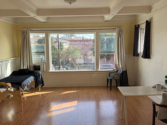 A room you will not want to miss. This large one bedroom is a steal of a space. large one bedroom with and elongated space and windows all around. Private entrance into the unit. Large one bedroom with private bathroom and built in china cabinet dresser. hardwood floors throughout the unit and an airy bedroom draped with natural lighting throughout the house is rented to one tenant on the bottom floor but the upstairs is divided to 4 private bedrooms with their own private entry and they share a kitchen. the 4 tenants get to share a private laundry room with free washer and dryer. no smoking no pets