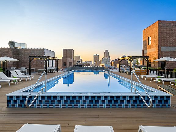 - Exterior features: Availability 24 Hours, Barbecue, Bicycle storage, Built on 2 Acres of Neighborhood Space, Concierge, Courtyard, Covered ride share pick-up and drop-off area, Coworking + Conference Spaces, Flooring: Wood, Freestanding Shower Enclosed with Glass Doors, Game Room, Gathering Kitchen with Coffee Bar, Golf and Game Simulator, Grab and Go Market, High-speed Internet Ready, Historic Building, Keyless Entry, Large Windows, On-Site Maintenance, On-Site Management, Open Spacious Floor Plans, Pet Park, Pickleball Court, Premium Workout Equipment, Fitness Studios with Virtual Trainers for Pilates, Yoga and More, and Golf and Game Simulator, Quartz Countertops, Rooftop Deck, Rooftop Pickleball Court, Screening room, Stainless Steel Appliances, Sundeck, Tall Ceilings (10-11.5 ft tall)