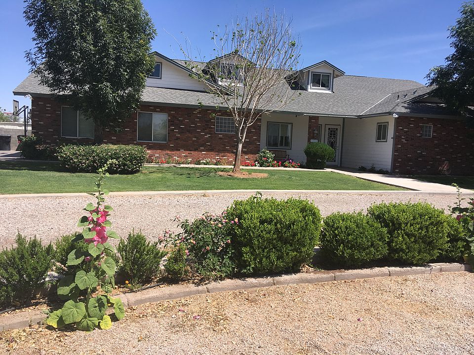 used brick and stucco on one irrigated acre. large back yard with pool, tall swings, and in ground trampoline, Elevated brick planter gardens around property. NO HOME OWNERS ASSOCIATION