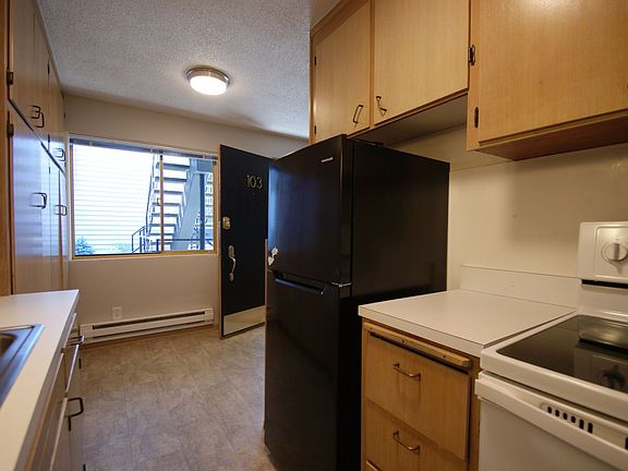 Unit 103 is located on the middle floor of a cozy 12-unit, three-floor 1950s building. There hardwood floors throughout and original cabinets for a vintage vibe. This unit is being offered with a 12-month Lease term and $125 utility fee for water, sewer, and garbage.