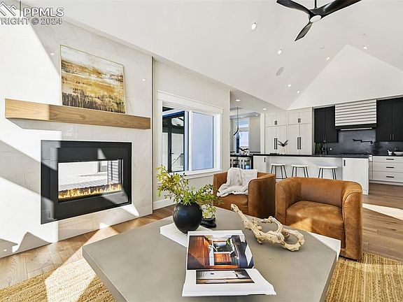 Welcome to your dream home at the end of a serene cul-de-sac in the Winsome community! Nestled on an expansive 5.28-acre lot, this property offers a rare combination of tranquility and luxury, with zoning that allows for two horses. As you step inside, you’ll immediately feel the warmth and charm of the cozy hearth room, which boasts breathtaking views of Pikes Peak and a welcoming fireplace. This versatile space can double as a formal dining room and seamlessly opens to the back deck, ideal for indoor-outdoor living. The chef’s kitchen is a culinary masterpiece, featuring a hidden pantry, a large island, double ovens, and a gas cooktop. It’s the perfect setting for crafting gourmet meals while enjoying panoramic views. Retreat to the master suite, where vaulted ceilings and a second fireplace create a luxurious ambiance. The master bedroom also offers stunning Pikes Peak views and direct access to the back deck. The adjoining spa bath is a sanctuary of relaxation, with two master closets, a zero-entry shower, and a soaking tub. Convenience meets luxury with the bath connected to the laundry room. For guests, the main level includes a secondary junior suite with its own private entrance, offering a perfect space for extended stays. The lower level is an entertainer’s paradise, featuring a gathering room with a full secondary kitchen, a billiards room, and a theater room. There are also two additional junior suites, each with its own unique touches: one with a double vanity and barn door, the other with a small wet bar ideal for a coffee corner for guests.  The property is designed for outdoor enjoyment with multiple decks and patios, including a covered patio that walks out to the beautifully landscaped yard. A vault/safe room provides versatile options—convert it into a wine room or use it for your own creative purposes! Additional features include a convenient mudroom off the oversized 3-car garage, perfect for everyday living.