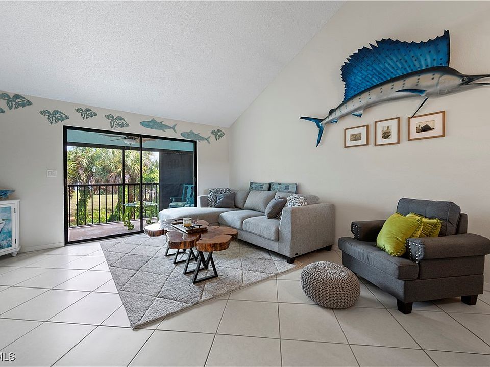 Beautifully updated and fully furnished 2nd Floor Condo with 2 Bedrooms / 2 Bathrooms and a private 105-sq-ft lanai. Condo has been repainted and modernized with an electric fireplace wall feature, stainless steel appliances, new ceiling fans and fixtures, and all-new bathrooms with updated vanities and frameless glass shower enclosures with ceiling-to-floor tile. The kitchen has updated countertops and cabinetry as well. Plus, solid surface flooring throughout (no carpet!) with luxury plank LPV in bedrooms and diagonally-laid neutral tile in the main living areas. Community amenities include: a clubhouse with meals and bar, a community pool, tennis and pickleball courts, public golf course and a boat ramp with gulf access! In fact, for only $500 you can store your boat here for the whole winter! And this unit in particular, with its sunny private lanai, looks over the gulf access canal. Buildings have been recently repainted and the carports are new (with all assessments PAID). HOA dues cover the water and cable, building insurance and maintenance, and the amenities and common areas. Condo fee is only $359/month and the master association is only $260/month, making this home a smart choice! Conveniently located in southern Fort Myers, with quick access to the beaches and shopping destinations in both Fort Myers and Estero / Bonita Springs / Naples.