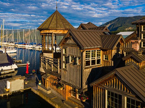 The Most Beautiful and Photographed Home in Idaho. This design masterpiece has been featured in Smithsonian Magazine. Waterfront is an understatement. This floating dream could be yours! Unobstructed views, many private sanctuaries inside this gorgeously designed home with every living space its own. Internal boat garage. If you're not living in it full-time, this would be the most remarkable and desirable vacation rental in the United States. Located on Scenic Bay Marina on the A dock, gated private property. No public access.