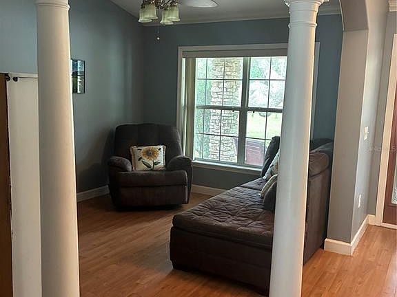 Walk into this gorgeous 4 bedroom 3 bath single family home perfect for large families or those needing flexible guest or home office space. The spacious master bedroom includes high ceilings. fan and ensuite bath. The open well lit kitchen wiht eat-in breakfast area with beautiful countertops and plenty of pantry space. The front yard welcomes you to sit in the porch to enjoy the weather and listen to the peaceful nature sounds. Your pets will love the large back yard. NO HOA will allow you the space and flexibility to of Florida's outdoor living. New AC and appliances.