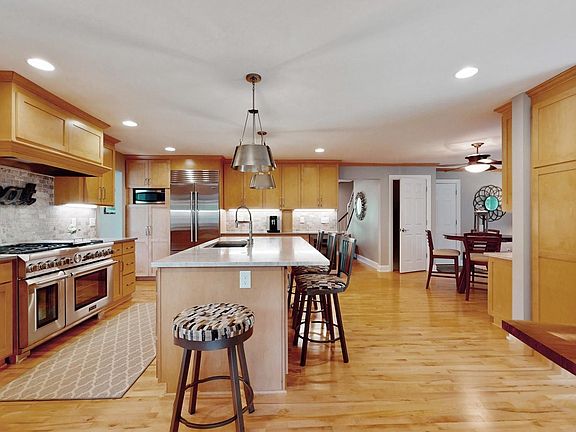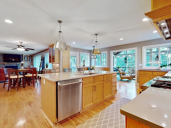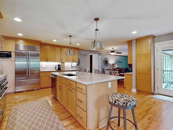 Be prepared to be impressed with this meticulous sellers who have done all the necessary upgrades to make this home showroom ready for the lucky new buyer-totally remodeled kitchen with Quartzsite center island-top of the line appliances-informal eating area-french doors leading to a 3 season porch w/vaulted wood ceilings with gas fireplace overlooking beautiful landscaped private rear yard-2 decks plus stone patio-main floor family room with gas fireplace-maple floors throughout main floor-primary bdrm up 17x15 with hardwood floors & walk-in closet. Lower level remodeled with den, bdrm or exercise room, rec room with gas fireplace.