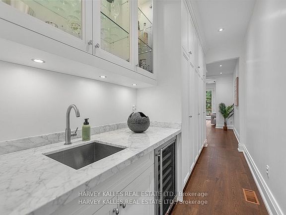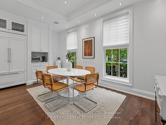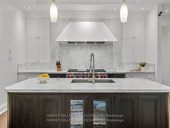 Experience the timeless sophistication of a New York brownstone, reimagined in the heart of midtown Toronto. This bespoke builders own residence showcases hand-finished limestone architecture and over 4,200 sq. ft. of interiors defined by 11 main floor ceilings, elegant proportions, and meticulous craftsmanship. An inviting marble mosaic entry hall introduces the home, where elegant French pocket doors reveal the chefs kitchen. At its centre, bespoke cabinetry is paired with book-matched marble, a large island, and a sun-filled breakfast area. A discreet walk-through pantry offers abundant storage along with a wine fridge, bar, and display. Expansive glass doors extend the living space to a private deck and landscaped yardideal for both refined entertaining and everyday living. Elegant curves throughout, including a sweeping staircase, lend architectural drama, while solid core wood doors and a built-in Bose surround system underscore the homes quiet luxury. A dedicated space alongside the staircase also allows for the addition of a private elevator. Upstairs, with soaring 10 ceilings, the oversized primary suite is a sanctuary complete with an expansive dressing room and dual spa-inspired ensuites joined by a dramatic walk-through shower. Two additional bedroomseach with its own ensuitecomplete this level, including one with a private study ideal for a home office, reading nook, or serene retreat. The versatile lower level features a bright recreation room/gym, guest bedroom, full bath, laundry, and direct access to the double garage. This home delivers a rare blend of convenience and sophistication. Perfectly positioned close to synagogues as well as Torontos elite public and private schools, this residence offers both lifestyle and locationjust moments from downtown. A residence of rare distinction for those who value timeless design, craftsmanship, and modern comfort.