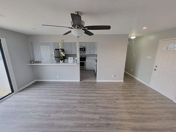This home is located at the entrance of a long cul-de-sac. This home features an open living room with plenty of natural light, a newly remolded kitchen with recess lighting that extends to the living room along with new tile floors, washer & dryer hook connections (located in the garage) and a beautiful back yard. Laminate floors (living room & bedrooms) Tile floors (kitchen & bathrooms) Granite Counters Stainless Steel Gas Stove Stainless Steel Dishwasher Stainless Steel Refrigerator Stainless Steel Microwave Blinds Ceiling Fans Laundry located inside garage with washer & dryer included One Car Garage Residents are responsible to pay ALL utilities: electric, gas, water, trash and sewage. Owners responsible for landscaping