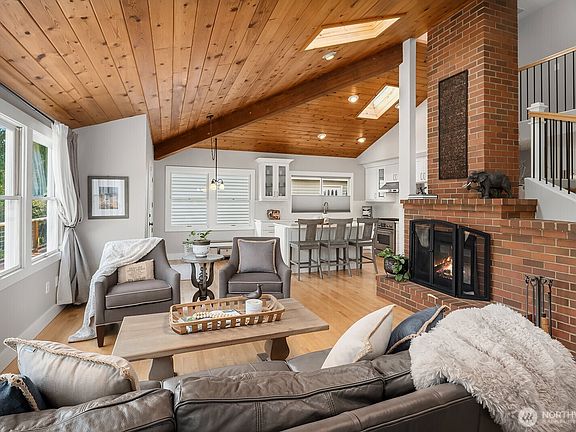 Experience the balance of comfort, space & beauty on this private estate. Set on shy 2 acres, this manor offers room for cultivating gardens, hosting gatherings or relaxation. The main home welcomes you to light-filled spaces with 3 bdrms+office. Great rm have walls of windows, vaulted cedar ceilings, fireplace & hardwood flrs. Kitchen with white cabinets, quartz counters & ss appliances. Primary bath is a retreat w/a clawfoot tub, marble sinks & sweeping territorial views. Multiple decks & meandering garden paths frame the natural beauty. Winter vistas open wide to the valley & beyond. Newer furnace/ac, HWT, comp roof, ext paint. 700 SF DADU atop 3-car garage for extended living. Generous parking+boat/RV & 2 stall barn. Snoqualmie Schools.