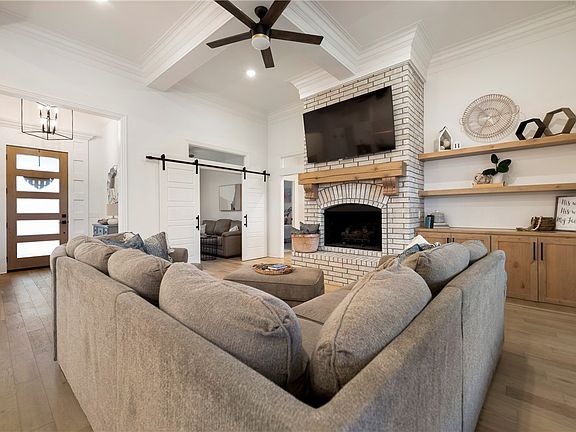,one owner home, situated on a 1.15 acre lot. 4 bedroom /3 Bath home with study, office nook with built in desk, and cubbies,3 bedroom downstairs, 4th bedroom bath/or bonus room is upstairs. Open Kitchen features breakfast area,large bar area,gas cooktop, Quartz countertops, extra large pantry with built-ins /cabinets, and flows to the beutiful family room with wood floors,coffered ceilings,gas fireplace. oversized laundry room with sink and built ins, laundry connects to a very spacious main bedroom closet. Outdoor living features a covered patio with fireplace,ceiling fan and TV connection.