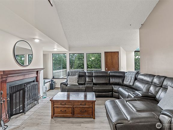 Spanning 2,551 sq. ft., this 3-bed, 2.5-bath home offers versatile living with stunning open ceilings and abundant natural light. The main-level primary suite features a walk-in closet and ensuite bath. Upstairs, enjoy a spacious kitchen, guest half-bath, and cozy fireplace. Downstairs boasts two bedrooms, a full bath, large rec room (or 4th bedroom), plus ample storage—could be a perfect mother-in-law suite. Entertain outdoors on the 692 sq. ft. deck, fenced yard, patio, and a hot tub. Two-car garage with finished storage above. Skylights, two fireplaces, new carpet, and LVP flooring complete this inviting home!