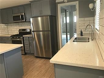 Newly remodeled from the top to the bottom! Stunning inside and move in ready! 760 sq ft back home with a large living room combined with a beautiful new kitchen with a gorgeous island complete with a gas fireplace, adjacent is the gorgeous bathroom all remedied and new with new beautiful tile, glass door and sink, large bedroom with a walk-in closet and its own entrance door. This rental has all new gleaming floors, beautiful paint color, shaker cabinets, recessed lighting, windows and central air. Rental has its own washer and dryer area, complete with its own washer and dryer outside in a covered/closed area, very convienent. Utilities and Existing cable is included with the rental. Rental unit is located in the very back of the property, totally contained and not accessible to the general public from the street. Must have a gate code to enter and renters just need to walk down the driveway after opening secure gate. Outside there is a small patio area to relax. No pets. Do not disturb the front home occupants. All utilities are included along with Wifi.