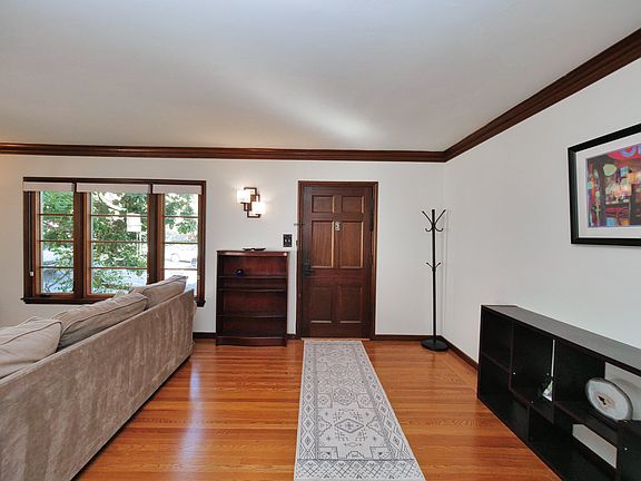 Step inside and you'll immediately notice the gleaming hardwood floors that run throughout the main living areas. The updated kitchen features stainless steel appliances, including a gas range, and plenty of cabinet space for all your cooking essentials. The open floor plan makes entertaining a breeze, and the large windows flood the space with natural light.