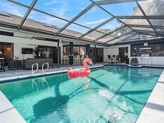 Welcome home to Lake Magdalene Manors, where tree-lined streets, friendly neighbors, and a true sense of community create the perfect backdrop for this beautiful 4-bedroom, 2.5-bath pool home. Situated on a large, fenced lot, this home was made for both everyday comfort and unforgettable gatherings. As you step inside, a welcoming layout greets you with a formal dining room to your left—ready for holiday dinners and celebrations—and a formal living room to your right, perfect for morning coffee or quiet conversations. Just beyond, a bright front bedroom makes an ideal home office or guest room, complete with a convenient half bath. The primary suite is your private retreat, featuring tall ceilings, sliders that open directly to the pool, and a spacious ensuite with bold blue tile accents that add a touch of charm and character. On the opposite side of the home, the heart of the house awaits—a chef’s kitchen designed for connection. With a six-foot island, two ovens, white cabinetry, stainless steel appliances, and a serving window to the patio, this space is ready for Sunday brunches, family pizza nights, and everything in between. The kitchen overlooks a warm and inviting family room, complete with a floor to ceiling wood-burning fireplace, wet bar, and vaulted ceilings that fill the space with natural light. Step outside and picture weekends spent hosting pool parties, grilling by the outdoor kitchen, or relaxing under the covered patio while friends and family splash in the pool. The large fenced yard is perfect for pets, playtime, and Florida evenings under the stars. Two additional bedrooms and a full bathroom are tucked away for privacy, making this split floor plan ideal for guests or family. The spacious laundry room is located down the hall with room for all of your extra storage. With a 2-car garage and a location just minutes from shopping, dining, and top-rated schools, this home is as convenient as it is charming. Whether you’re hosting the holidays, taking evening walks beneath the oaks, or simply soaking up the sunshine by the pool, this Lake Magdalene Manors home offers the vibe you’ve been dreaming of. IT'S NOT JUST A HOME...BUT A LIFESTYLE!