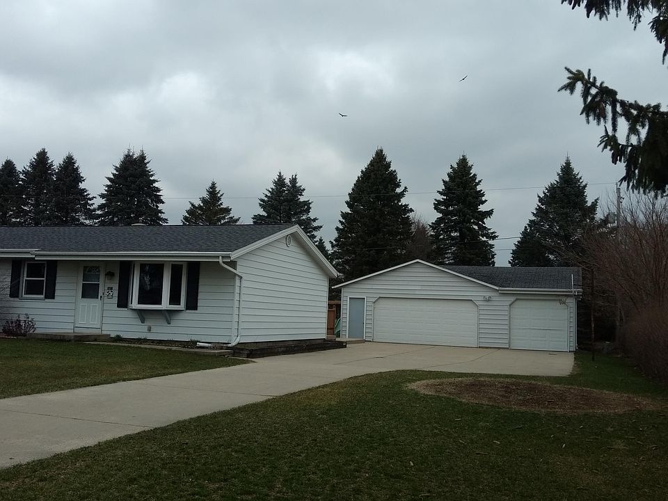 Smart Updated Ranch with 3.5 car garage! You will love the bright open concept of LR open to KN / DN. Newer patio doors to maintenance free composite deck.Seller replacing roofs on house and Garage, adding a dishwasher and new water heater. Eating area includes pantry and built in cabinets. Updated bathroom, All six panel doors, all bedrooms feature custom closet organizers. Lots more room in the finished lower level with a two ingress/egress windows and entertainment area and the 4th bedroom. Updated Septic'99 Aluminum siding, newer Furnace and AC, updated 200 amp electric. New carpet and interior paint!Huge concrete driveway. Check out this smart buy today.